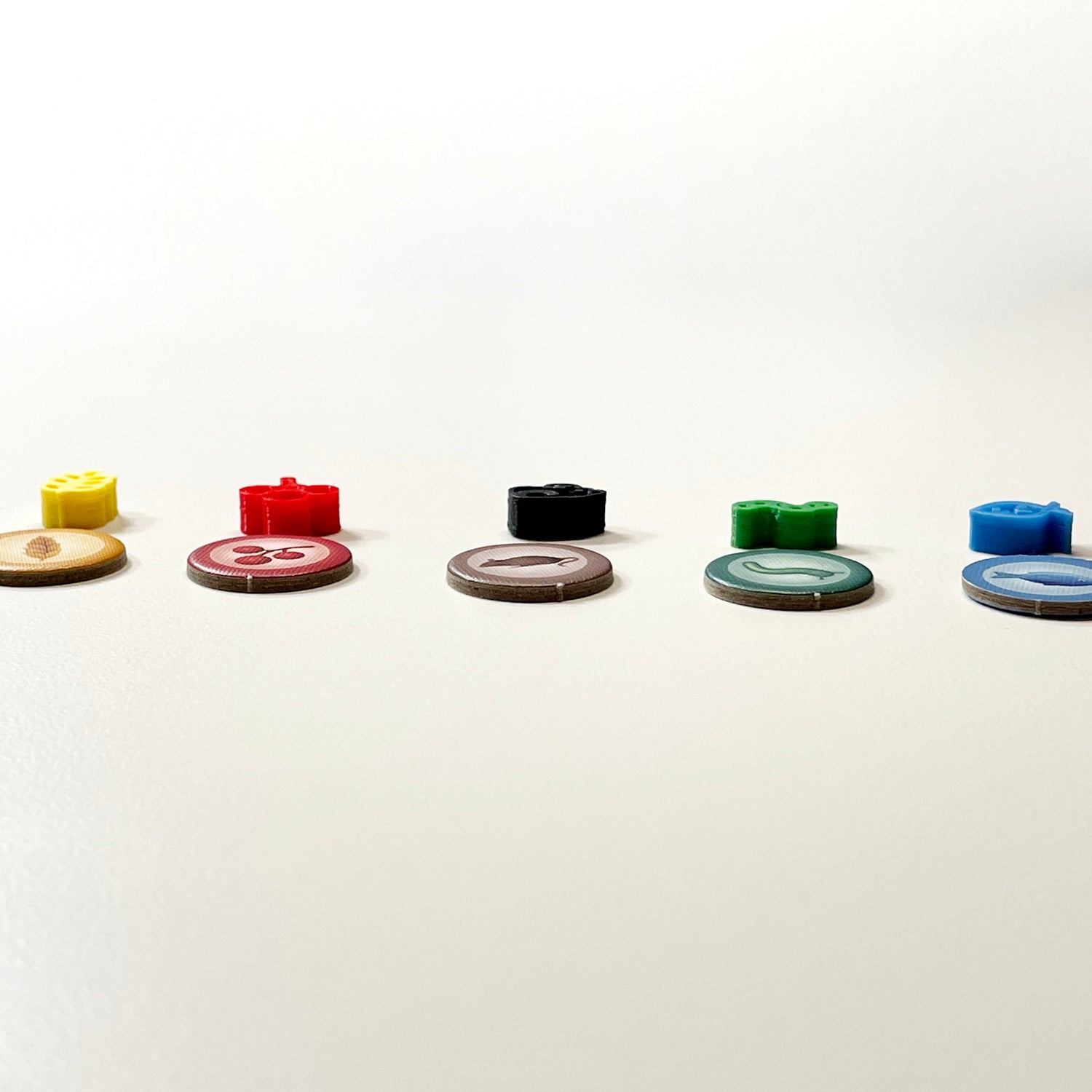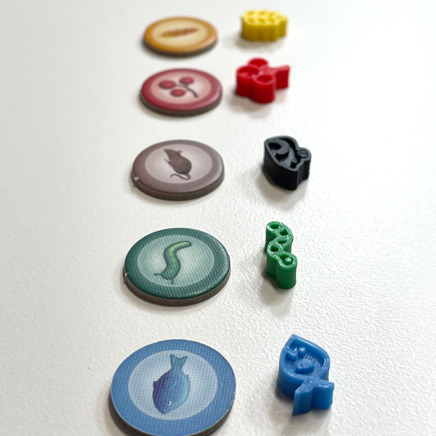 You get a full set, 1:1 replacement of all the tokens - worms, wheat, fish, cherries and rats. We also can create larger collections for the European expansion, and nectar tokens for the Oceania Expansion.